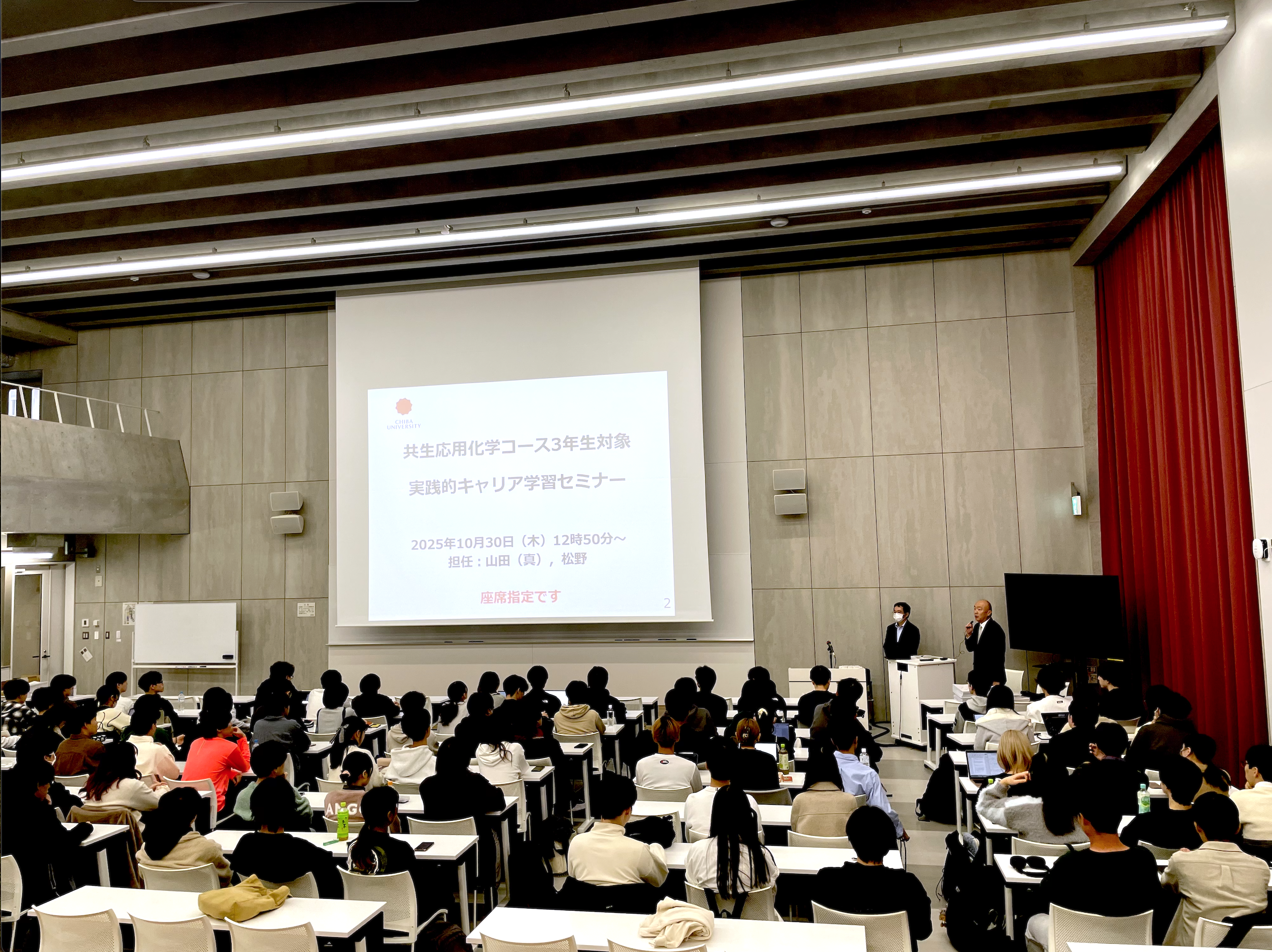会社紹介に加えて研究開発業務などについても丁寧にご説明いただき、学生にとって進路選択の参考となる実践的な情報を早期に得る貴重な機会となりました。